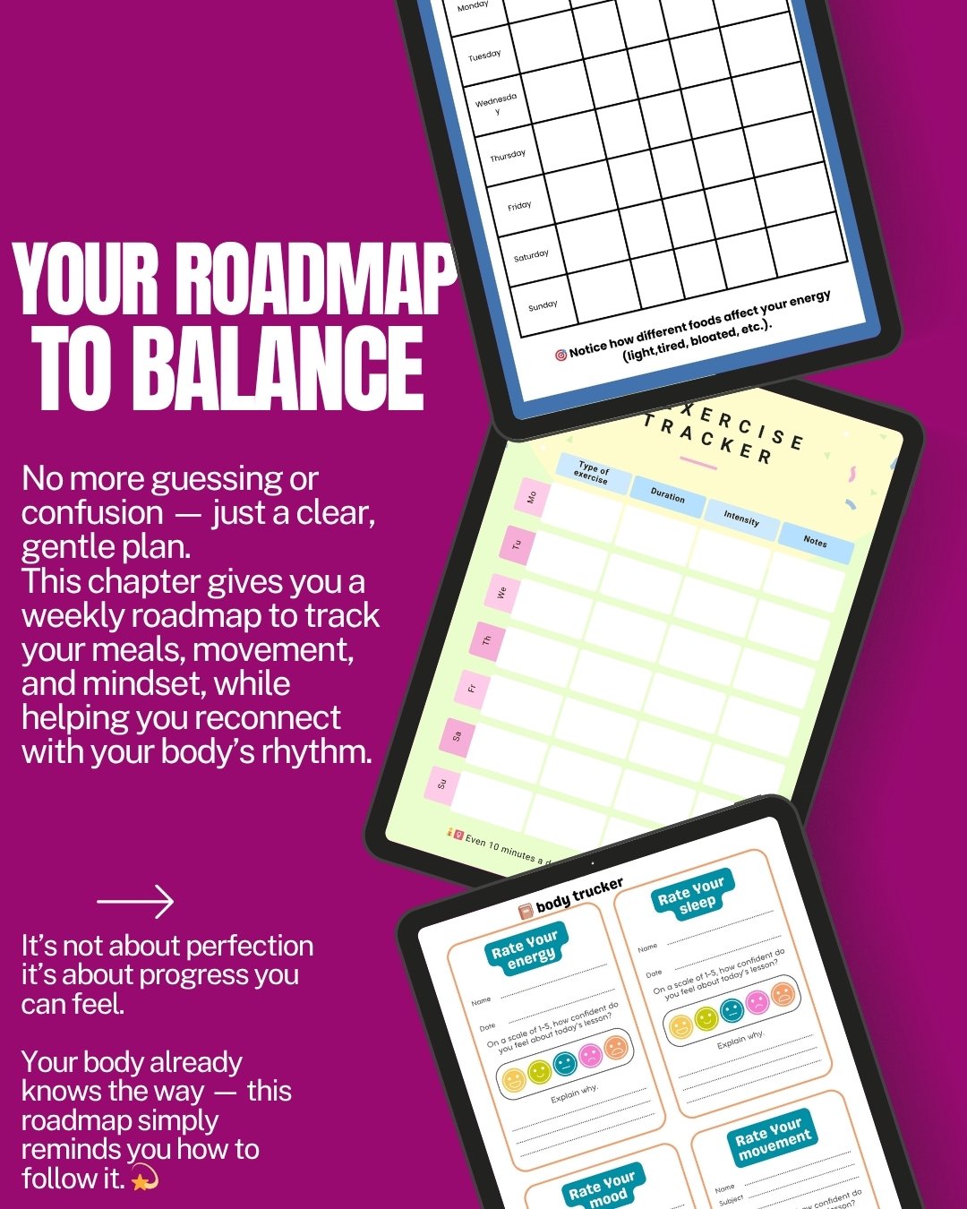 Weekly tracking sheet + “Energy Reboot” mini plan